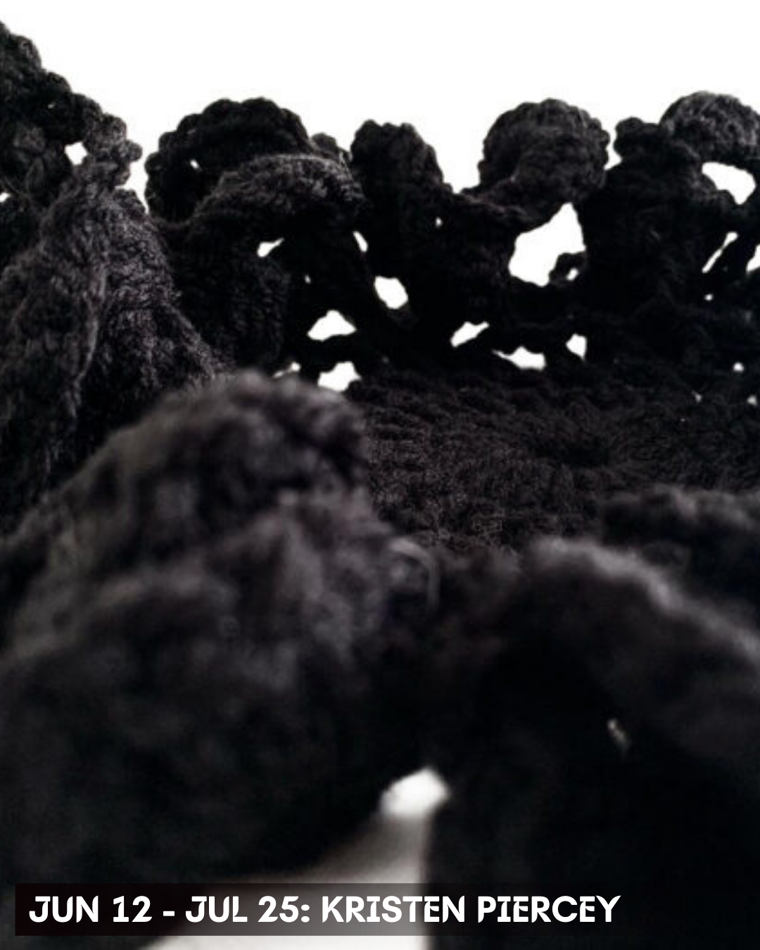 Unfed Hunger is composed of two doilies laid on individual red tea plates that are coupled together by crochet that spills over each plate and pools to mimic blood. While doilies are traditionally associated with domesticity and care, these doilies are black, turning their inherent delicacy, somber. The plates beneath them consider themes around both communion and sacrifice, evoking the Catholic altar as much as the dinner table.