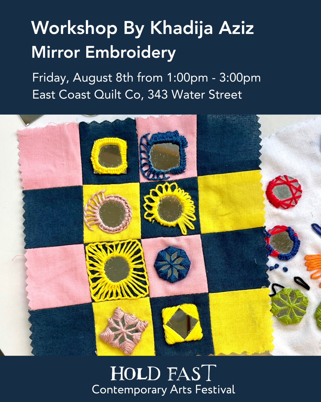 Join HOLD FAST Featured Artist Khadija Aziz for a Mirror Embroidery Workshop!