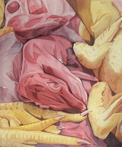 With Quiet Hands is a series of watercolour paintings that explores the delicate balance between tradition and modernity. Through a nuanced celebration of butchery as both craft and ritual, the exhibition invites contemplation of our intertwined relationships with food, identity, and sustainability, while contrasting traditional skills with our growing, modern-day detachment from food sources.