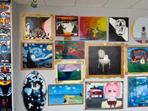 This initiative is an extension of the Arts for Equity project and brings together students from art programs, providing space to reflect on identity, belonging and their lived experiences in Newfoundland and Labrador. With support from teacher Meleny Yetman-Holloway, Eastern Edge facilitators and project partner YWCA, youth of all racial and cultural backgrounds are presented with artists and artwork that has worked as tools for change. They were encouraged to ask meaningful questions, envision positive change and express their ideas through a painting project that fit neatly within the grade 12 art curriculum.