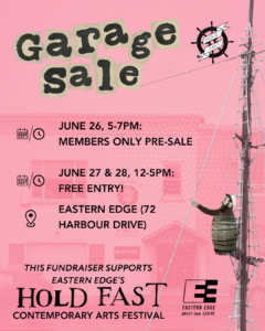 The annual HOLD FAST Garage Sale Fundraiser is BACK and the deals are hotter than ever! Drop by 72 Harbour Drive from 12-5pm on June 27 & 28 to shop for a great cause. Come snag some literal treasures (clothing! home goods! decor! art supplies! more!!!) AND support our free local summer arts festival ✨
