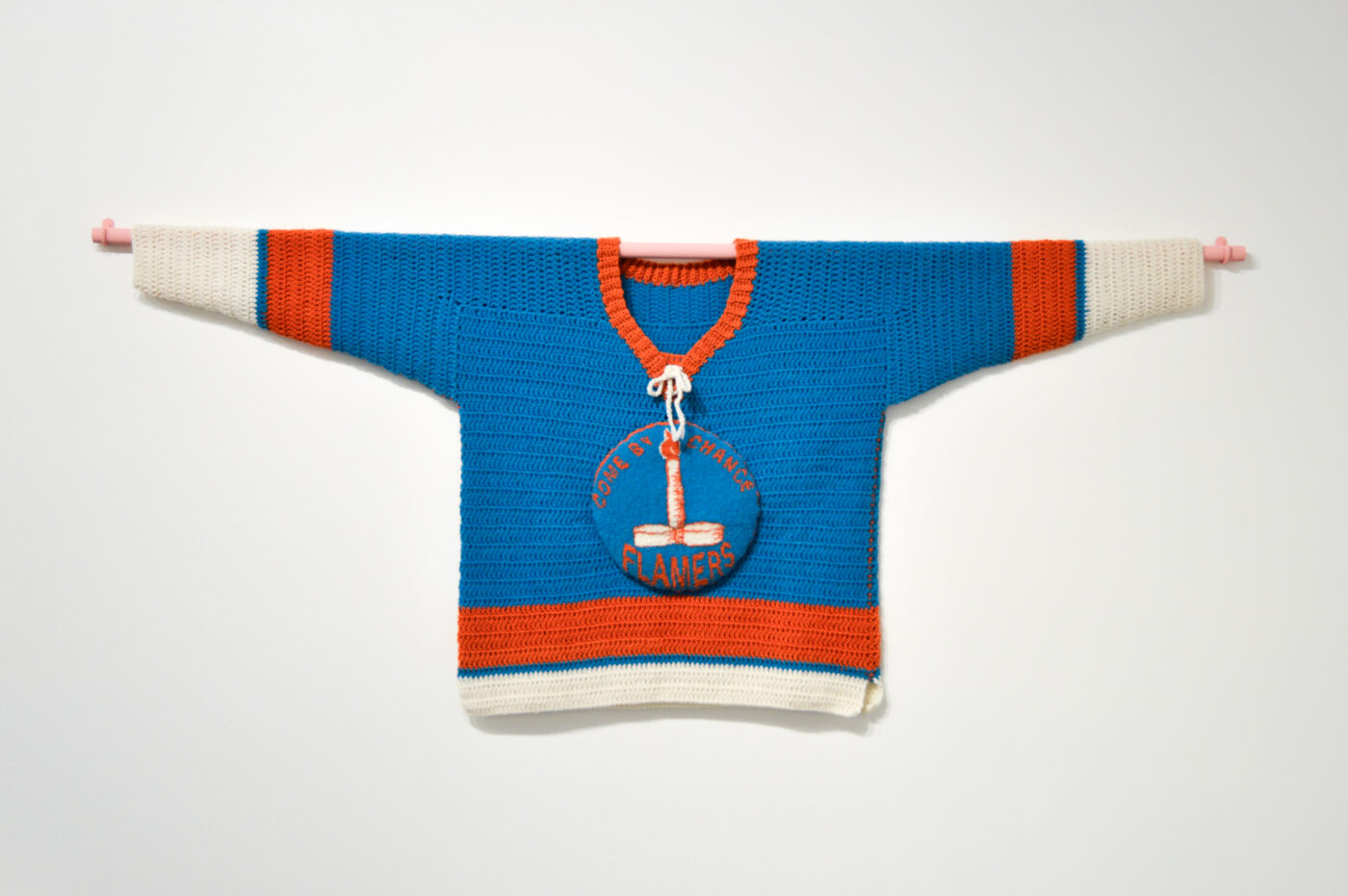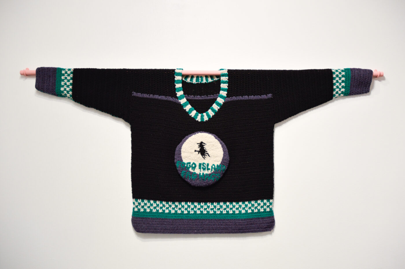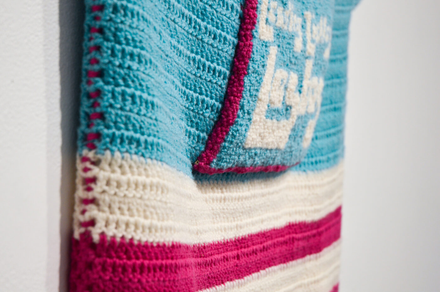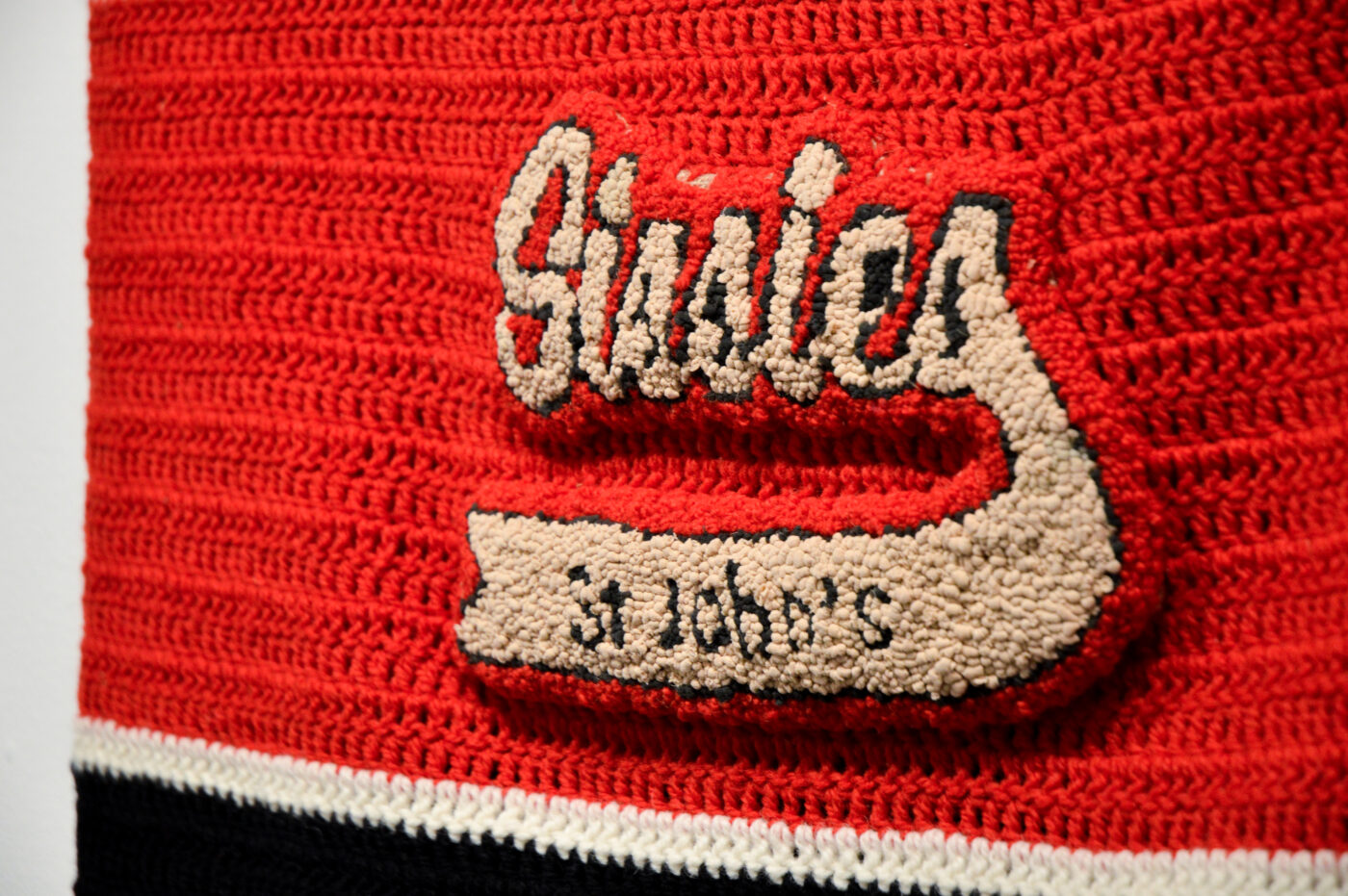 Lucas Morneau. St. John’s Sissies (2021). Crocheted yarn. 71 x 171 x 2.5 cm. The Rooms.